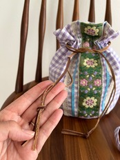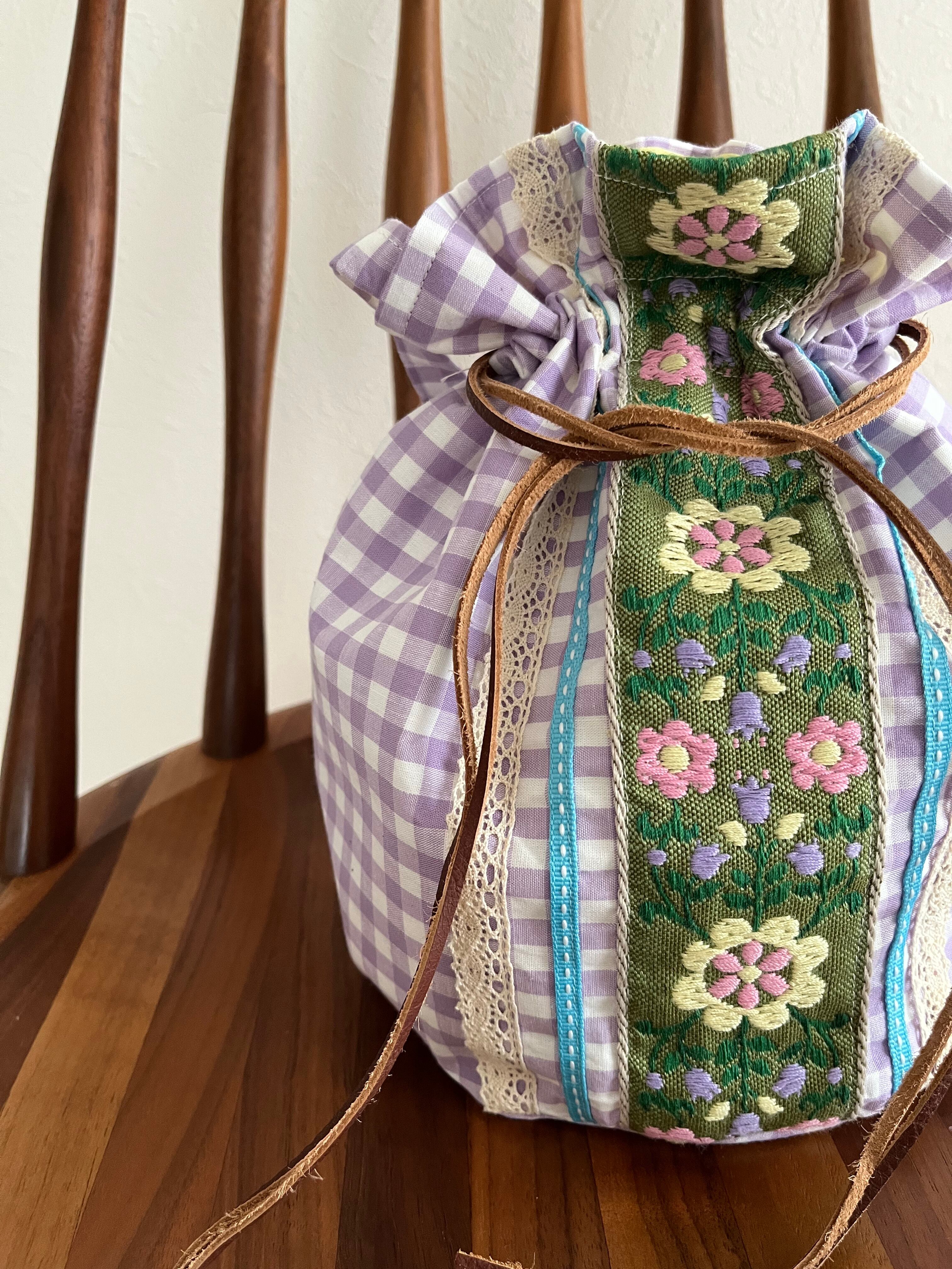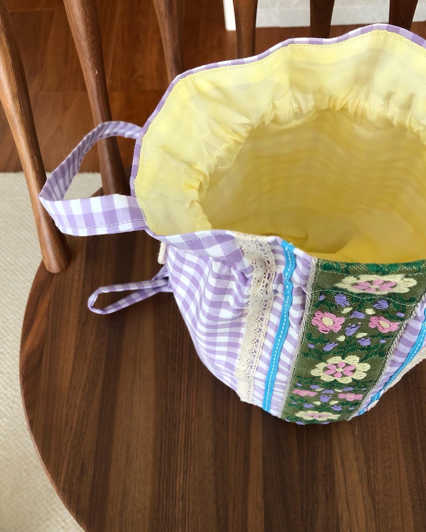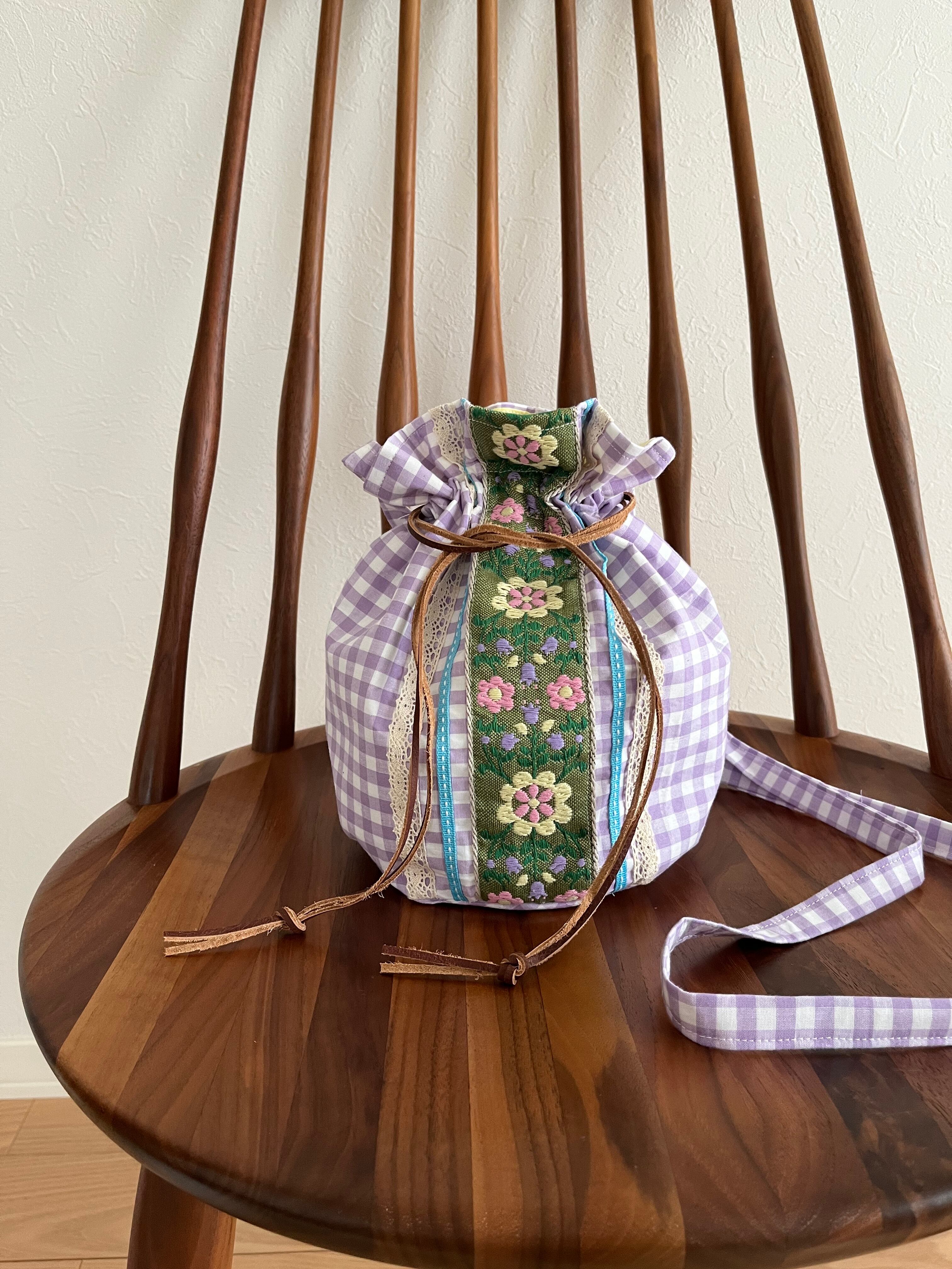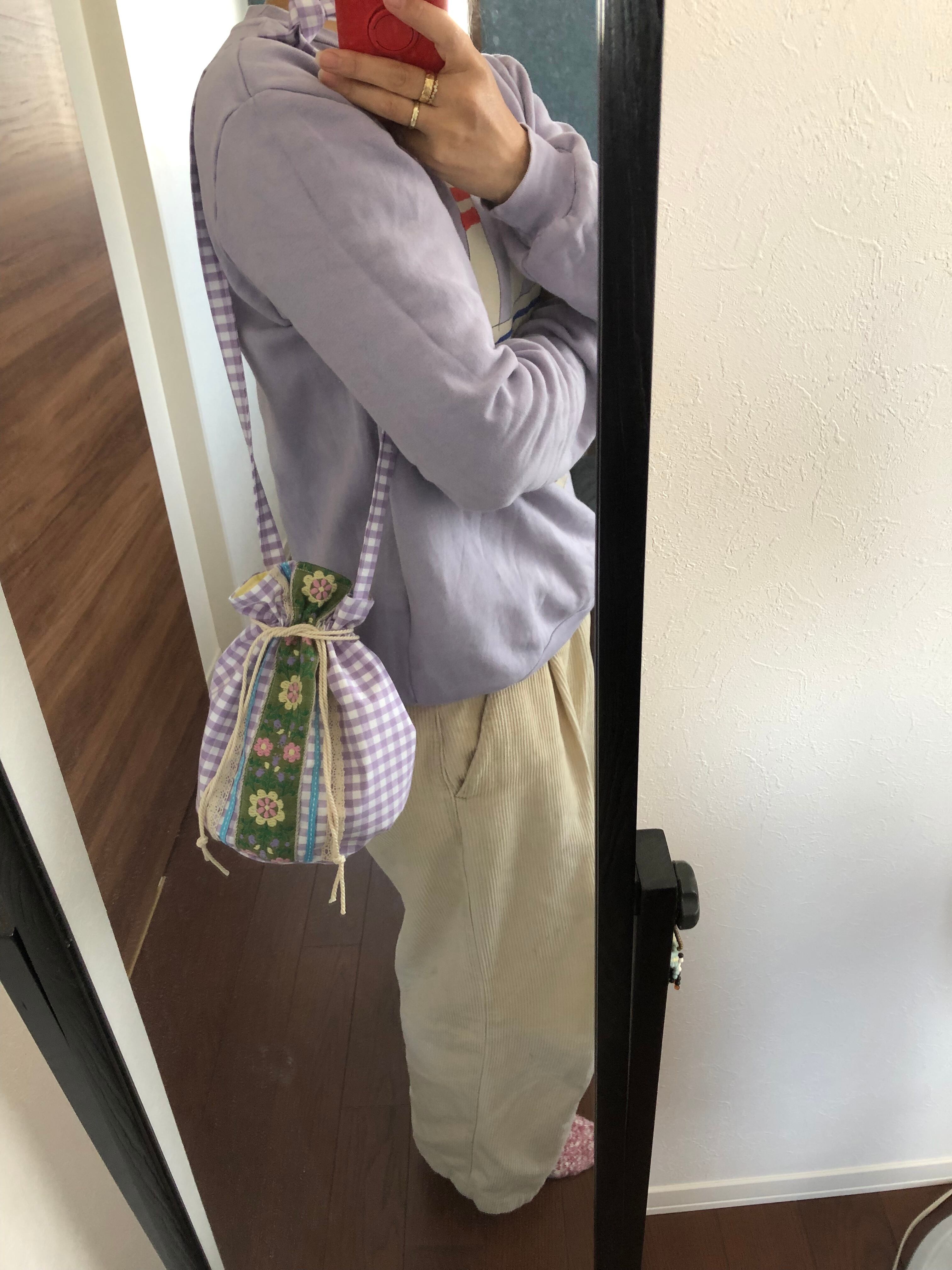 丸みがあって肩からさげられるショルダータイプです。紐を結んで肩から下げても可愛いです。