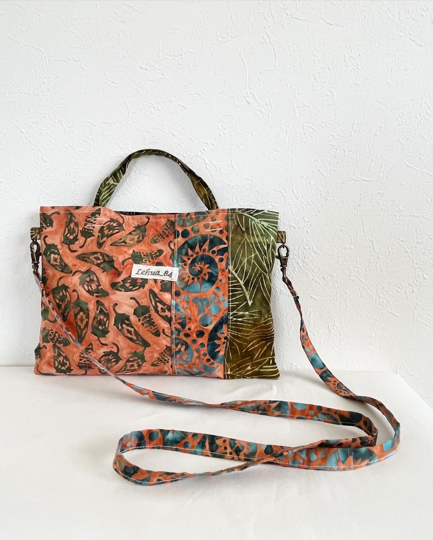 ショルダー紐は長めに作ってあるので斜めにもかけられますし肩にかける時は結んで使ってもok!